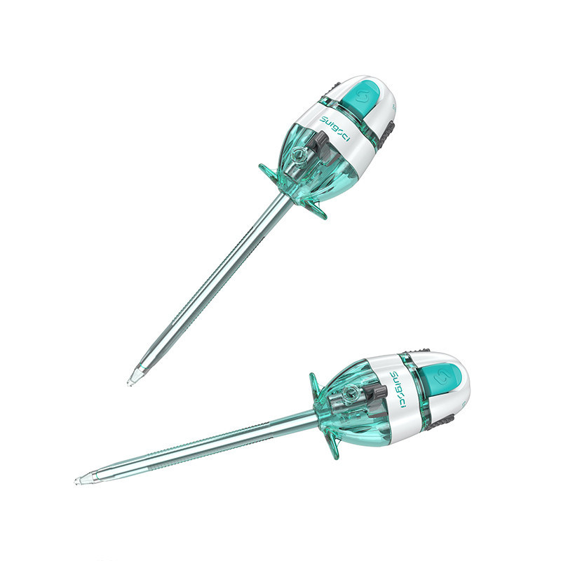 Los trocares de endoscopio de 5 mm están diseñados con una superficie única en forma de hilo con un diente invertido.Aumenta la fijación de la manga en la pared abdominal y evita el deslizamiento cuando los instrumentos entran o salen de la manga.